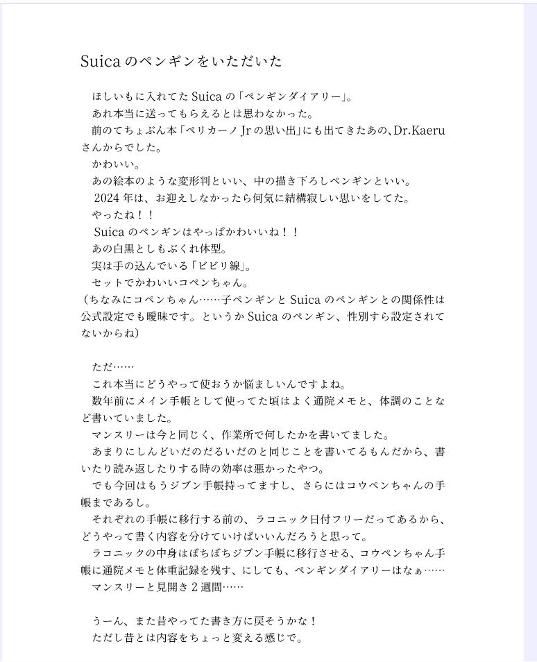 Suicaの「ペンギンダイアリー」の話、「ジブン手帳Lite」のその後の話など。